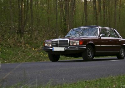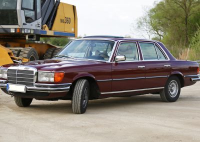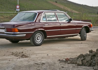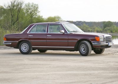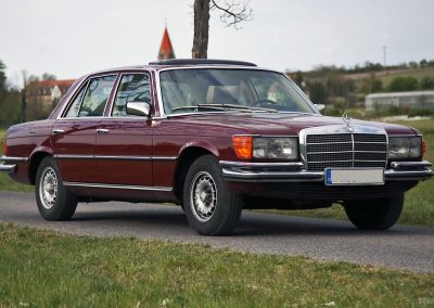Der Mercedes W116, von September 1972 bis September 1980 gebaut, löste die Baureihe W108 / W109 ab. Mit ihm wurde die „S-Klasse“ in die Mercedes Nomenklatur eingeführt. Und damit auch in den Markt.  W116 (SE, Limousine) und V116 (SEL, Langversion) boten viele bemerkenswerte technische Neuerungen, vor allem bei der passiven Sicherheit war der Wagen ein echter Quantensprung. Etwa der kollisionsgeschützt über der Hinterachse verbaute Tank, das Vierspeichen-Sicherheitslenkrad, die im C111 erprobte Vorderachse, das ab 1978 weltweit erstmals erhältliche, analog gesteuerte, elektronische ABS.