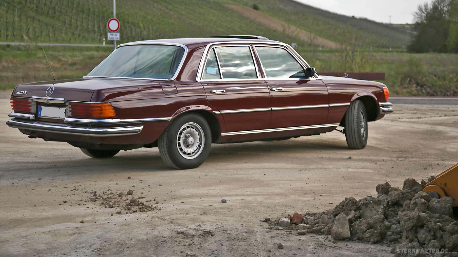 Zurück zu unserem Stern des Monats Oktober 2020, zurück zum 516 mittelroten W116 280SE in der Fotogalerie. Die zeigt die schöne S-Klasse kurz vor einer umfangreichen technischen Überholung, die hier auch noch Thema werden wird. Jedenfalls wurde der Wagen vor vielen Jahren von einem Stammtischmitglied angeschafft. Um ihn an Weihnachten zu verschenken. Mit Schleife drum. Im Schnee. An seinen Vater.  Wieso denn überhaupt und warum das falsche Typenschild am Heck klebt, könnt Ihr hier nachlesen. Wie Euer Mercedes zum Stern des Monats auf der MBIG Mainfranken Homepage wird, erzählen wir Euch gerne beim nächsten Stammtisch. Wir sehen uns auf der Frankenwarte…
